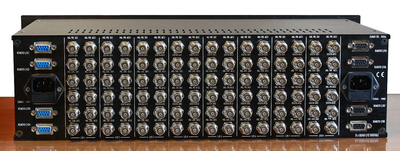 The 8 x quad digital SDI changeover is used in playout broadcast systems to give the operator an opportunity to switch immediately issuing from the main system to the emergency in the event of a failure of the equipment used in the distribution of audio/video signals: computers, hard disks, DVD players, etc ...