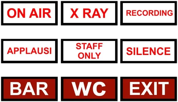 Possible applications such as signal light are various: in television studios , theaters, cinemas, dubbing rooms , conference halls , hotels , shopping centers , hospitals , etc ...