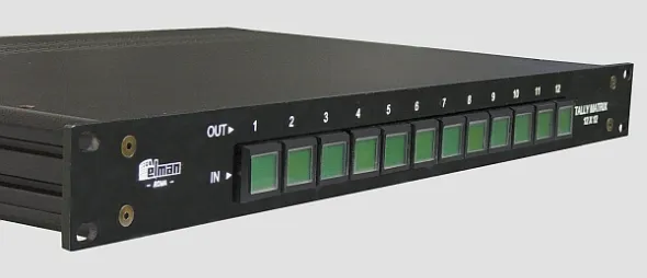 Tally Matrix 12x12 is a matrix switcher for the addressing of Tally signals that identifies the "on air" television cameras during a television shot.
