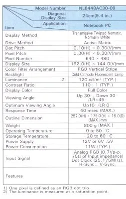 display 9,4" LCD TFT 640 x 480 pixels
