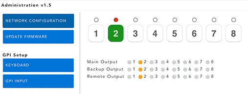 Tutto il programma di configurazione del GPI PRC 2 può essere caricato da computer mediante la presa LAN posta sul pannello posteriore e puo essere editato tramite una pagina html su un browser impostando come indirizzo di default 192.168.1.100 .